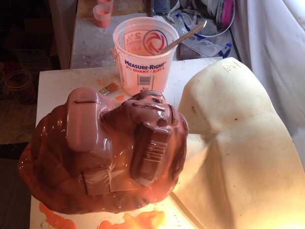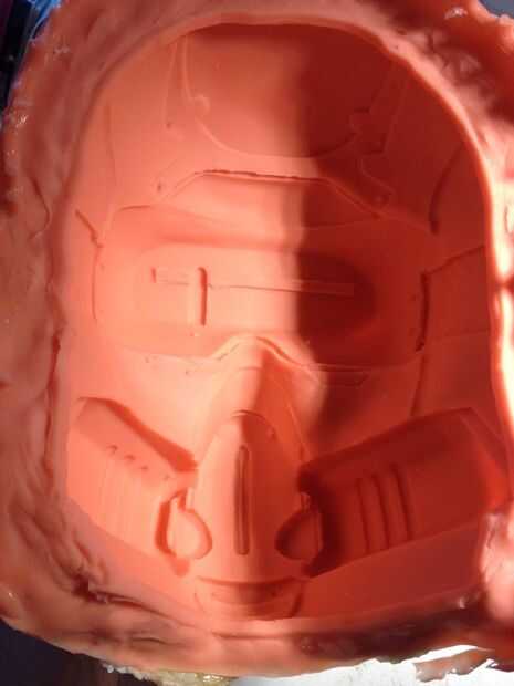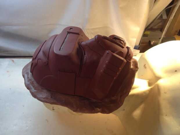 Mi máscara de Hunter de destino está ahora preparado, lleno y listo para el moldeado. Al igual que el molde basura uso rebote 25 de Smooth-On y echados de Smooth-Cast D 65. Usted verá en el elenco final que he añadido un ámbito adicional en el lado izquierdo de la placa frontal. Una vez tuve la versión final, que sabía que tenía que añadir el alcance para que visibilidad sería mejor para el uso de la Convención. Hice este ámbito fuera del tubo de PVC un una tapa de botella.