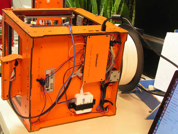 Vuelva a colocar la placa de cubierta y conecte el cable usb de AB en la caja de doodle3D y el ultimaker. Coloque la máquina detrás en sus pies, ahora el cable sólo extra es la usb cable mirada furtiva por debajo de la máquina: mucho mejor!