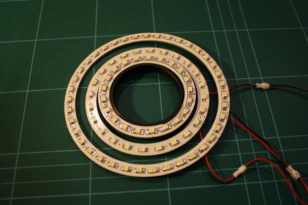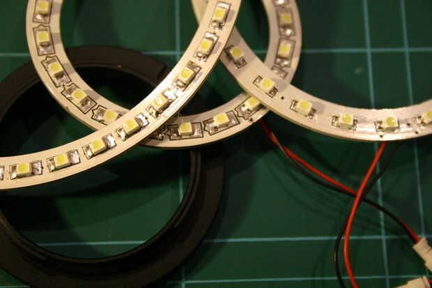 Estas la luz del anillo fueron diseñados para uso automotriz (crear BMW como anillos luz supongo) por lo tanto, se están ejecutando de 12 voltios. Los anillos son 8 mm de ancho por lo que sólo caben la D80 en D60 y D90 alrededor D70. Dan una muy homogonous luz blanca, no azul y no amarillo o bien. Mi anillos sorteo 100, 130 y 170 mA respectivamente. Con los tres se enciende es amp todavía menos de la mitad que se encuentra bajo el umbral de A 1 del regulador de voltaje.