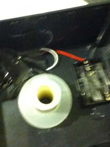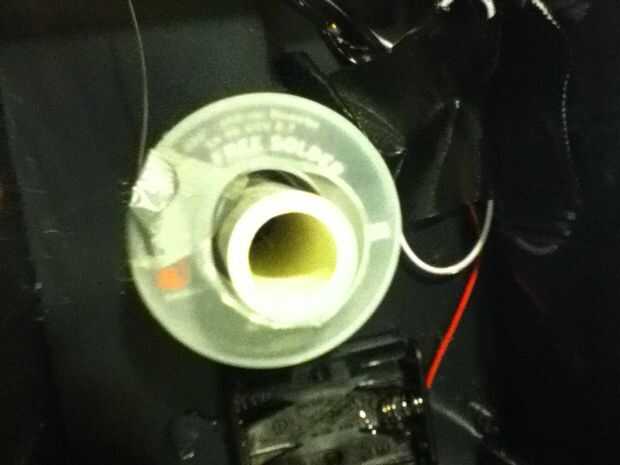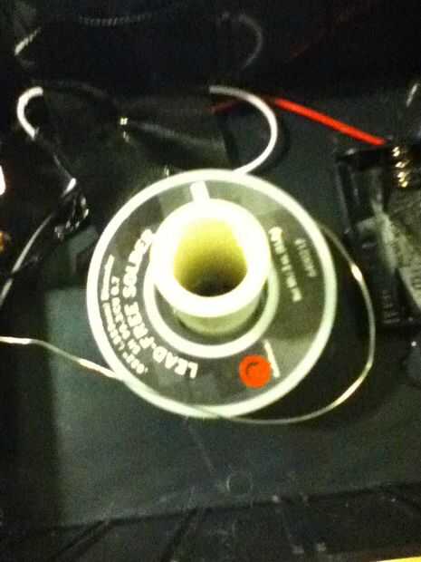 Comienza por cortar un precio de tubo de PVC como el cuadro de proyecto es alto. Los cables de la cinta y pegamento de PVC en el centro de la caja. Se necesita separadores para mantener la soldadura en el centro de la tubería. Sólo se cortan la "canilla" el cable entró por la mitad y ponerlos en el tubo con los extremos amplia frente a la soldadura. Coloque a un espaciador en la tubería, seguida por el rollo de soldadura y otro separador. Ahora, introduzca el extremo de la soldadura por la parte inferior agujero más con un palo de aproximadamente 1/3 de pulgada.