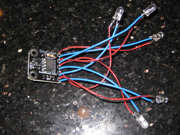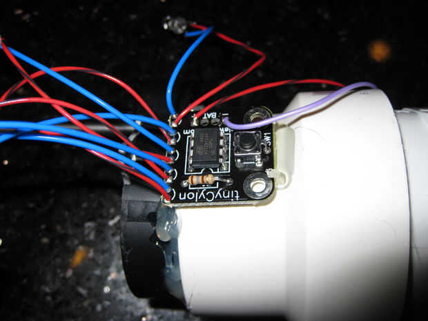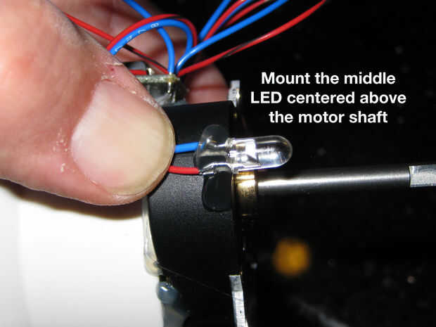 -Montar la otra tabla pequeña Cylon en el la base para que los LEDs están en una línea horizontal del motor.