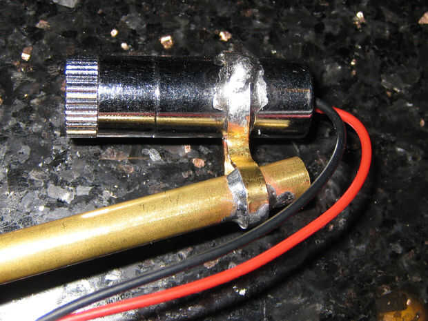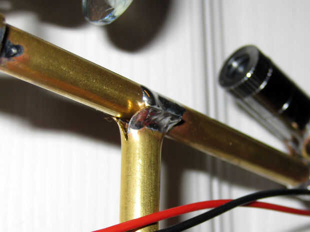 -La soldadura de ambos a los extremos del tubo de cobre de 4" para que el láser los puntos en espejo. Por lo menos acercarse lo suficiente que puede ser doblado para llegar a la posición correcta.