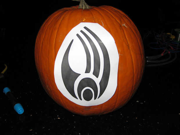 -Corte la insignia con suficiente margen de cinta adhesiva a la calabaza.