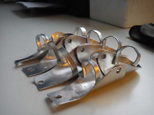 Para sujetar estos, recomiendo usar un epoxy en 2 partes. Tengo uno específicamente para pegar metal como pegado en mis hojas así.