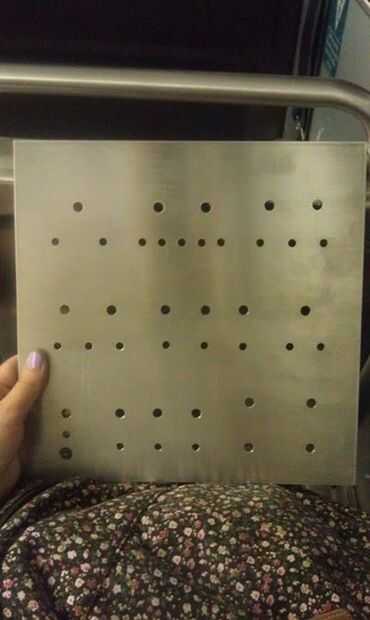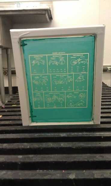 Hace referencia el esquema y panel cableado documentos para determinar qué componentes poblaron cada sección del panel y colocaron marcas de referencia en mi diseño para la perforación. Luego imprimí mi escala diseño y mi panel. Entonces tomé mi diseño a un amigo con acceso a un estudio de impresión quemamos una pantalla de seda de detección, limpiar a fondo el aluminio y seda proyectó el panel con tinta acrílica púrpura. Esto funcionó bien pero no pudimos hacer muchos pases sobre el panel o la tinta le mancha es probable que en el aluminio.