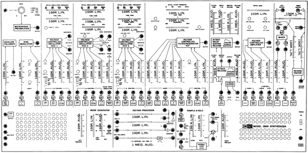 Los diseños que yo había visto no eran muy intuitivos, así que saqué mi propia. Me gusta mucho el diseño de la ARP 2600, es realmente intuitivo y fluye bien al hacer síntesis vivo. No tengo el espacio para trabajar linealmente, como quería un diseño más compacto. He incluido un diagrama de la disposición de 2600 para referencia.