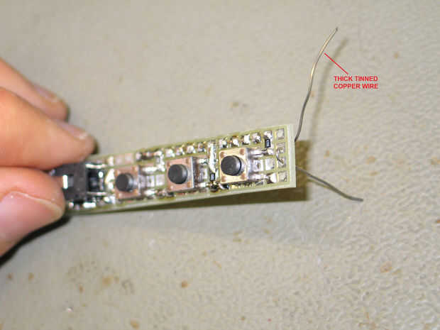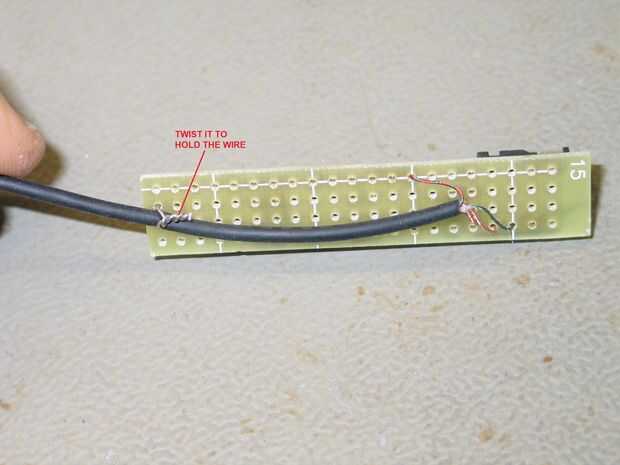 Ahora usando un grueso alambre de cobre estañado puede hacer un bucle y tuerza el extremo para sujetar el cable en su lugar.