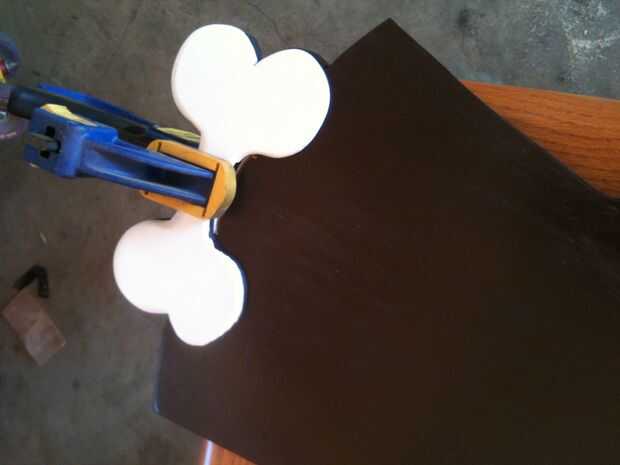 Usando una pinza y pegamento todos de propósito blanco, pegamento del hueso a la pared posterior