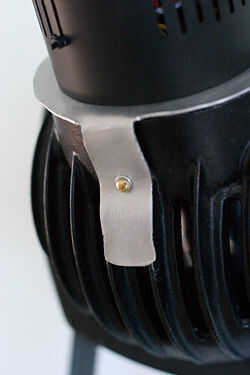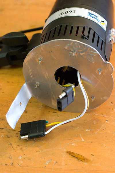 Cortar una bandeja de aluminio de espesor en la misma forma que la antigua vivienda de bombilla. Hacer un agujero en la bandeja para cables a través del hilo de rosca y perforar orificios para los tornillos. Perno de la luz estroboscópica a la bandeja. Desatornillar el seguro de vivienda vieja bombilla y usar el agujero del tornillo para colocar la bandeja a la luz.