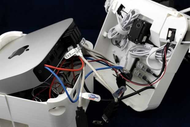 Añadir cuatro cables de extensiones USB con conectores de 90 grados. Compruebe el cableado.