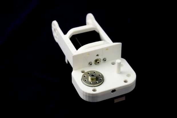 Montar un servo en el cuarto enlace (J) del brazo robot y puso el tercero (I) y (J) cuarta parte junto.