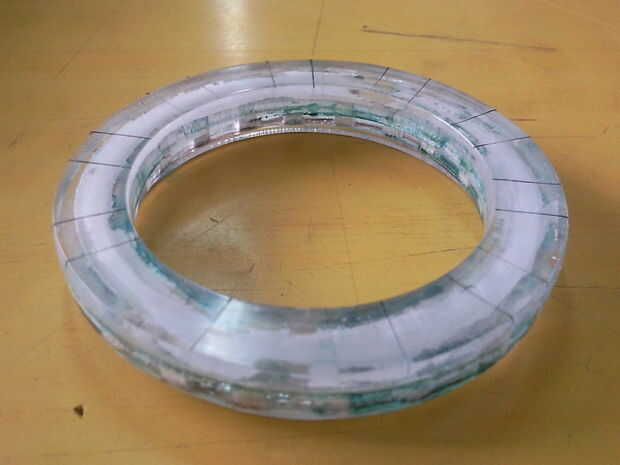 Luego pega un anillo de plexiglás en este circuito. el diámetro del anillo de = el diámetro del anillo del circuito.
