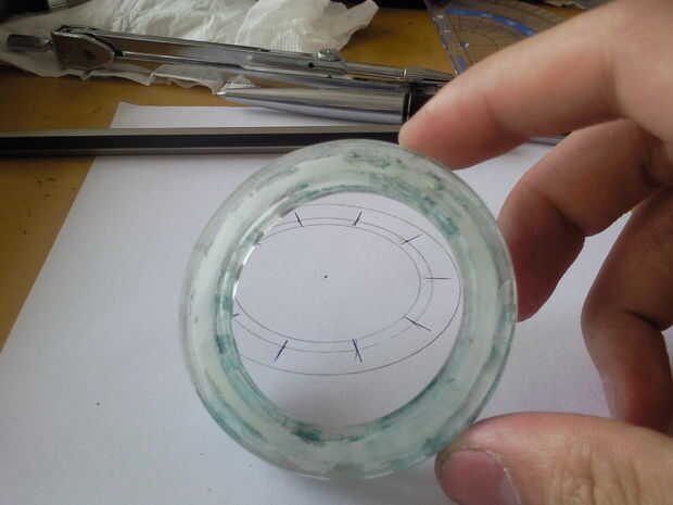 Después de que se completaron todos los pasos anteriores, corté las marcas en la superficie de la anillo de luz para la localización de la bobina de cobre amarillo.