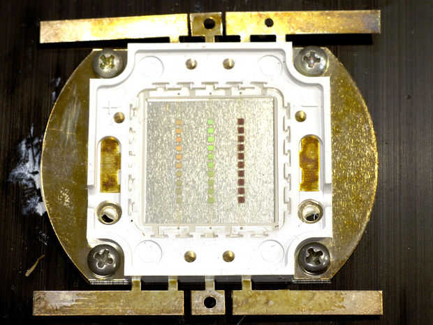 Una final nota, hay disipador de calor de estos tipo de LED o fallará. Tanto como amo a Deal Extreme, no proveen fichas con sus piezas. Una regla general para LED como estos es que el dado debe permanecer por debajo de 150C. Prefiero mantenerlos por debajo de 80C. Los disipadores de calor que estoy usando en los emisores de 10W mantener el dado a alrededor de 55C. Por sí mismos los disipadores de calor de haz de calientes al tacto pero protegen el LED