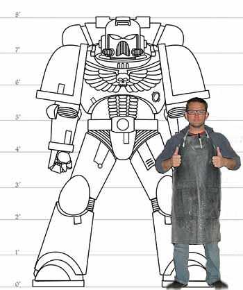 Después de intentar yo hablar de ella durante años, finalmente he aceptado el hecho de que debo construir a Marines Espaciales en toda su gloria o nunca estaría satisfecho con cualquiera de mis proyectos de menor. Hacerlo bien, los personajes terminados tendría que ser alrededor de ocho pies de altura y cuatro pies de ancho. Dado este requisito, el principal reto fue hacer todas las piezas lo suficientemente liviano como para ser un traje de vestir.