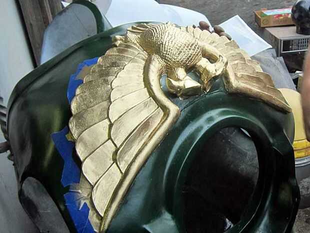 Una vez que todo era una cortina adecuada de verde oscuro Ángeles, el siguiente paso fue escoger todos los detalles. Las insignias en el pecho, esto fue una simple cuestión de enmascarar las partes no oro y usando un aerosol puede poner una capa de oro metálico en las piezas de oro.