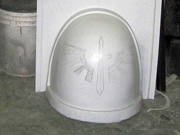 Para los hombros decidí que necesitaba plantillas con el fin de mantener la uniformidad de un juego a otro. Usando copias insatisfactoria de los pedazos del hombro que le puse a un lado durante el proceso de vacforming. Una vez que había de bosquejar los diseños de estas piezas, todo lo que tenía que hacer era recorto usando una rueda de corte plástico en mi herramienta rotativa Dremel y voilá: tuve una plantilla que se ajustan perfectamente a la superficie curva compuesta de la hombrera.