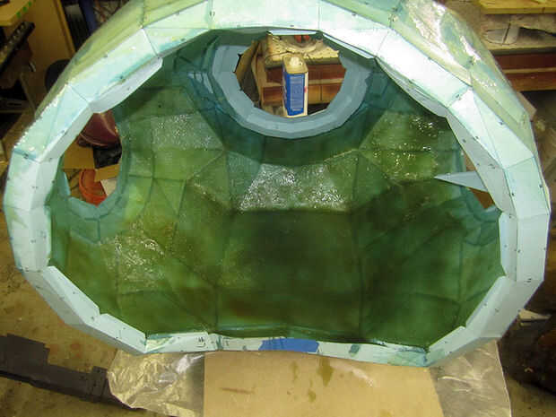 Dato curioso: presión atmosférica es 14,7 libras por pulgada cuadrada. Cuando coloque las piezas sobre la mesa de vacforming, todos los que la presión llevará en ellos. Las partes del pecho será aproximadamente 14 pulgadas por 25 pulgadas, para un total de 350 pulgadas cuadradas. Eso significa que tendrá que soportar una fuerza total de 5.145 libras durante el proceso de formación. Esto es casi lo mismo que una camioneta Ford F-250 encima del estacionamiento. Así que cuando piensas que estás hecho, seguir adelante y construir otra capa de fibra de vidrio dentro de cada pieza.