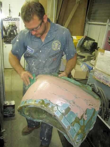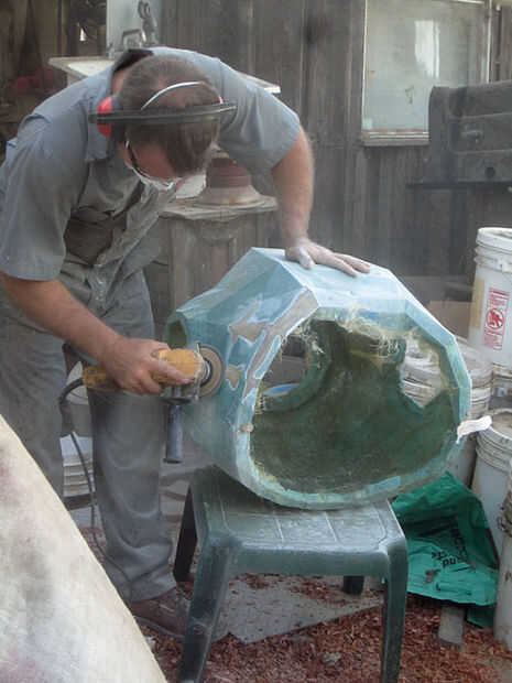 Usa el molinillo para acabar con las esquinas en el modelo de papel. Un flapwheel grano 80 hará el trabajo rápido de la fibra de vidrio y papel, pero también hará un lío enorme de polvo tóxico y desagradable. Es mejor trabajar en un área al aire libre y que aún desea usar protección respiratoria, auditiva y visual.