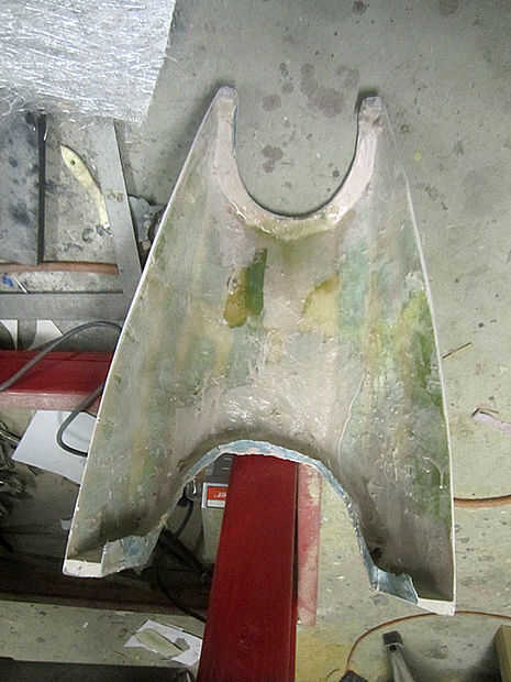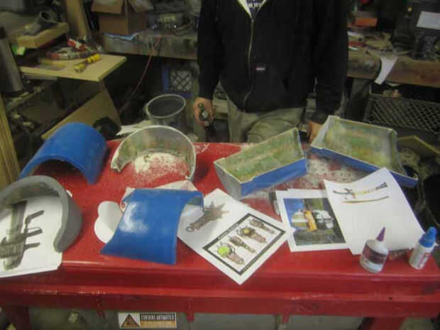 Una vez que se cortan las piezas, el siguiente paso fue añadir un borde alrededor del nueva extremo abierto. Con retazos de MDF, una frontera fue construida alrededor del borde, haciendo solamente el desplazamiento menor. Cuando forman el plástico sobre él, este desplazamiento se convertirá en la guía de corte que siga cuando lo haga el ajuste final de las piezas. Una vez que la frontera se construye, rellene los extremos abiertos pegando cartulina más sobre los agujeros y reforzar esta nueva cartulina con más fibra de vidrio. Mientras estaba en él iba adelante y coloca otra capa o dos de mat de vidrio sobre todo el interior de cada pieza.