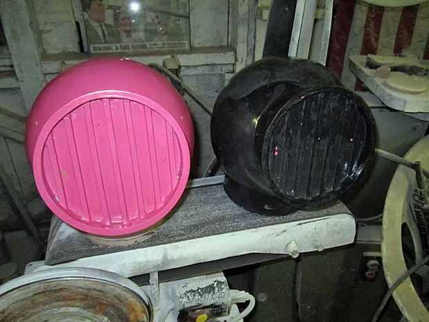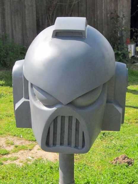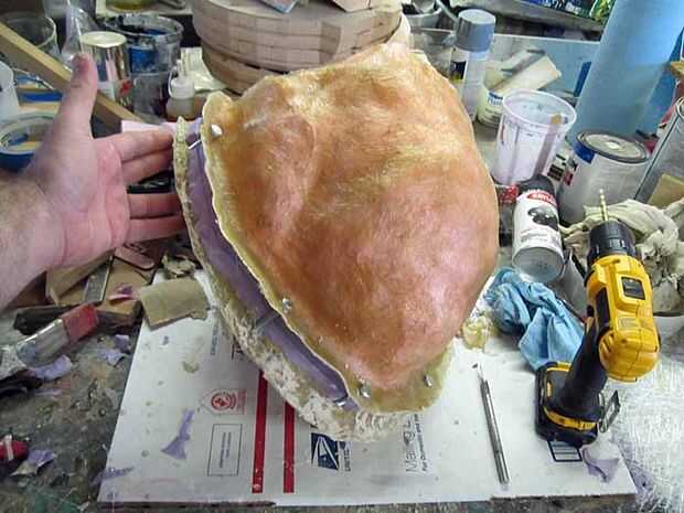 Para este proyecto en particular, utilicé métodos detallados en el libro y había hecho unilateral silicona moldes de bloque de goma para piezas como las asas de carga de la vajilla y los dientes de la chainsword. Hice los moldes de dos partes para la empuñadura de pistola y algunos de los otros widgets pequeños. Pero los moldes más interesantes fueron el rotocasting los moldes para los cascos y los orificios de la bola en la mochila.