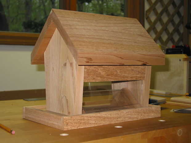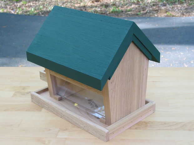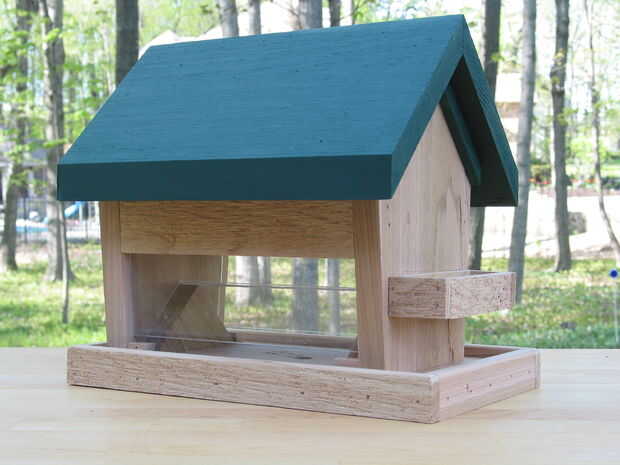 Recortar la base de la alimentación proporciona una percha para las aves y también evita que el exceso se derrame de la semilla (aves no tienen modales en la mesa).