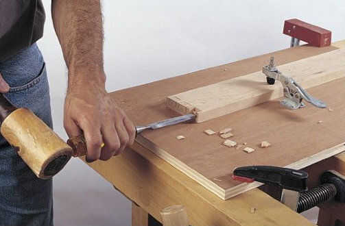 Pegamento de acción para formar el panel superior del cuadro de herramientas y cortado a la medida. Utilice una broca de redondeo encima de 5⁄8 pulg de reportes para el perfil a lo largo del borde inferior. Para sujetar la parte superior, primero inviértala sobre una superficie acolchada. Entonces, temporalmente quitar los lados caso internos y coloque el caso en la parte superior. Agujerear los agujeros piloto en la parte superior e instale los tornillos.