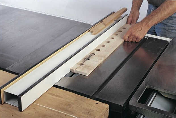 También que nos forramos los cajones con fieltro pesado-mesa de billar. Utilice un cuchillo para cortar el fieltro a la medida y simplemente poner cada pieza en una parte inferior del cajón. Para hacer un estante de cincel, dio una serie de agujeros de 1 pulgada en una franja de 1/2 en espesor de arce. Corte la tira a través del centro de los orificios (ver foto) y cortar para caber dentro de un cajón.