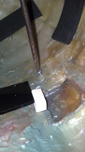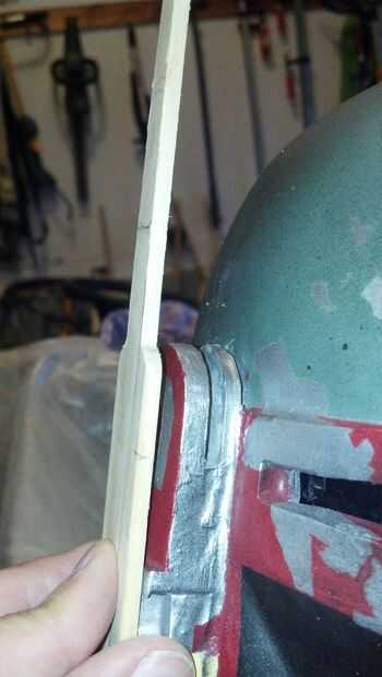 Marcar la profundidad de la parte inferior del tallo mediante ranura de auricular del casco como una guía. Redondear la parte inferior para que la rangfinder puede girar. Dejar un poco de material extra en la parte delantera para proporcionar más fricción. Recorte el material de la parte de atrás para que no se extiende sobre el auricular cuando el telémetro se gira hacia abajo.