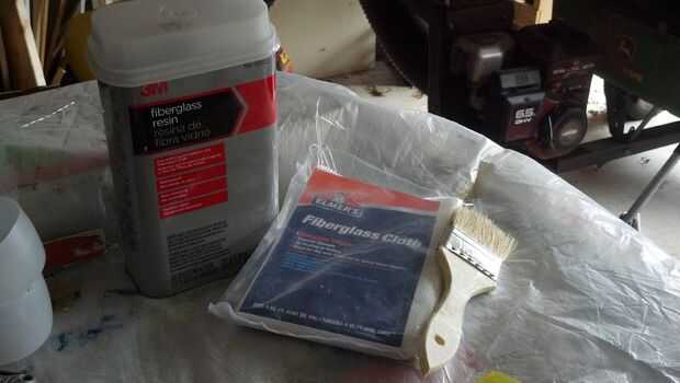 Mezcle la resina según las instrucciones del envase. Cepillo una capa en la parte exterior de cada pieza y dejar que cure. Cuando esta capa externa se cura, añadir capas al interior de la pieza. Incorporar parches de tela de fibra de vidrio en estas capas interiores. Cepillo en alguna resina, pegar en el parche de tela de fibra de vidrio, luego utilice la punta del pincel a pat en resina adicional hasta que se sature la tela de fibra de vidrio. Se superponen trozos de tela para asegurar un producto final sólido. El interior de la pieza debe cubrirse totalmente en tela de fibra de vidrio para maximizar su fuerza. Extiende el paño de la fibra de vidrio más allá del borde de cada pieza. Esto secará en picos puntiagudos, afilados, pero estos pueden ser eliminados fácilmente durante la etapa de lijado.