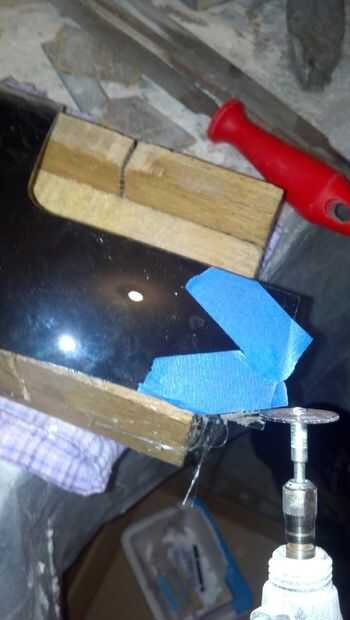 La visera se puede hacer de policarbonato y ventanas película de tinte. Las placas de policarbonato están disponibles en las tiendas de mejoras para el hogar, y película de tinte de la ventana está disponible en las tiendas de automóviles. Para este proyecto, he utilizado un visor prefabricado de t-visor.com. Este sitio se especializa en viseras de casco de Star Wars traje. A pesar de este casco es tamaño 3/4, el estándar visor "T" ajuste con sólo pequeñas modificaciones. Para permitir que el visor se deslice hasta la barbilla, recortan las esquinas de la parte vertical de la pantalla.