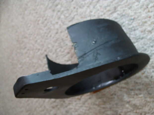 Corte 3" otro pedazo de tubo de su fundación. Ahora cortar a través de él en un momento para que usted pueda ajustar su circunferencia. Alinee el borde interno de la cara y haga una marca donde alcanza cerca de 3/4 la manera alrededor. Pegar esta pieza a un lado de la cara justo dentro del borde interno, con el espacio centrado en la parte superior.