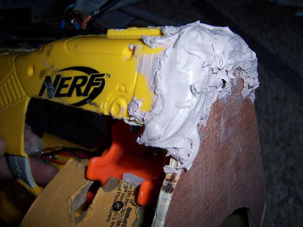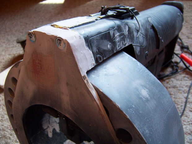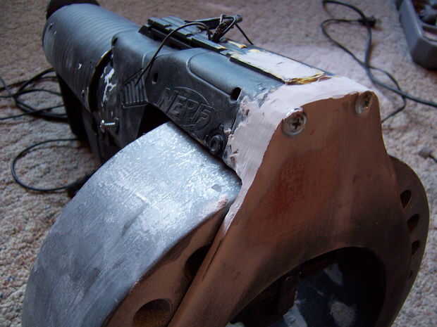 Cuando está todo alineado, mezclar algunos bondo y llenar la brecha entre la pistola y la cara. Cuando seca, arena hasta una transición suave de la pistola a la cara.
