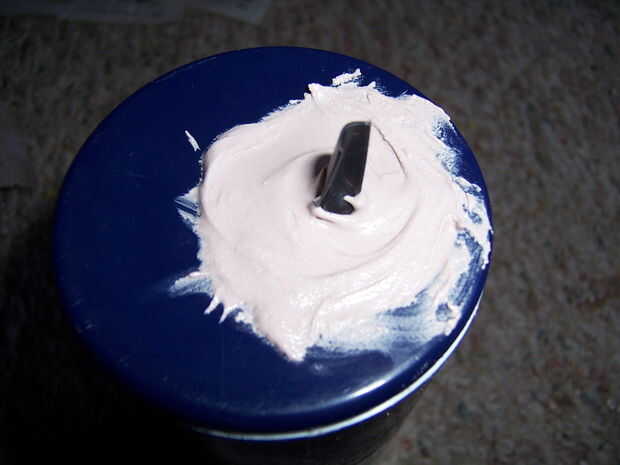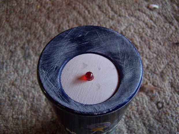 En el lado de la tapa, poner el LED por el agujero y envuelva alguna cinta alrededor de ella. La cinta mantiene el LED del bondo que se usan para llenar la pequeña hendidura en la tapa. Cuando esté seco, arena abajo liso, pero mantener la cinta en el LED.