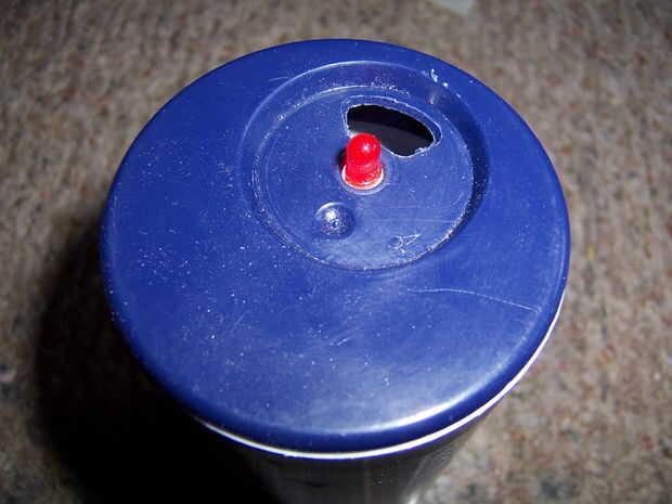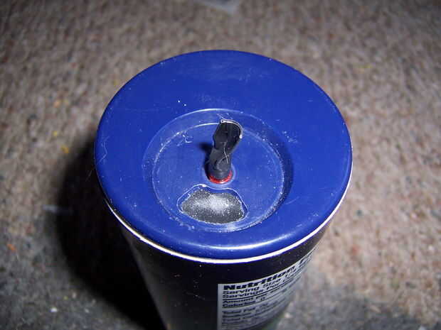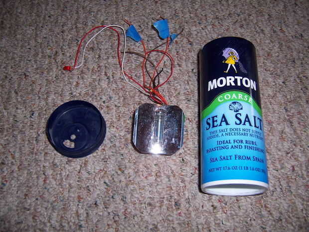 La luciérnaga tiene una luz que ilumina el resplandor en el oscuro de dardos, así que decidí utilizar esa luz y su cableado existente para hacer una linterna táctica donde estaría el motor. Para ello, utilicé un recipiente sal de Morton que es el tamaño y la forma de lo que quería. La tapa también tiene un bonito agujero en él perfecto para el LED que indica cuando la luz está encendida. (Si usted elige un contenedor diferente para utilizar, usted necesitará hacer tuyos alteraciones como mejor parezca.) Vas a tener que cortar los cables que van a la luz y para armar esta luz, así que cinta y número de cada uno de alambre para que sepas cómo volver a conectarlos.