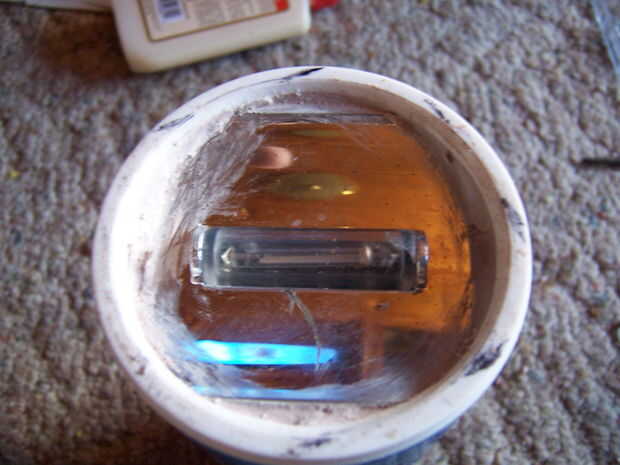 Armando esta luz es bastante simple. Primero se corta la parte inferior del envase hacia fuera, dejando un pequeño borde alrededor del borde. La utilicé mi herramienta giratoria para moler el abajo las esquinas del espejo reflectante de la luciérnaga de luz, por lo que cabe dentro del contenedor. Utilizar algunos bondo para mantener la luz en el lugar y sellar el extremo del contenedor alrededor de la luz.