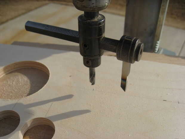 La parte más difícil fue perforar el panel frontal. Aquí es donde un router CNC realmente práctico! Tenía los agujeros de tweeter pequeño cubiertos con mi forsnter poco pero necesitaba averiguar la mejor manera de hacer 3" agujeros en la madera. Había intentado sierras antes y realmente no funcionan bien para múltiples cortes en madera contrachapada. Entonces encontré este tipo de herramienta: permite ajustar y hace cortes muy agradables circular con un taladro.