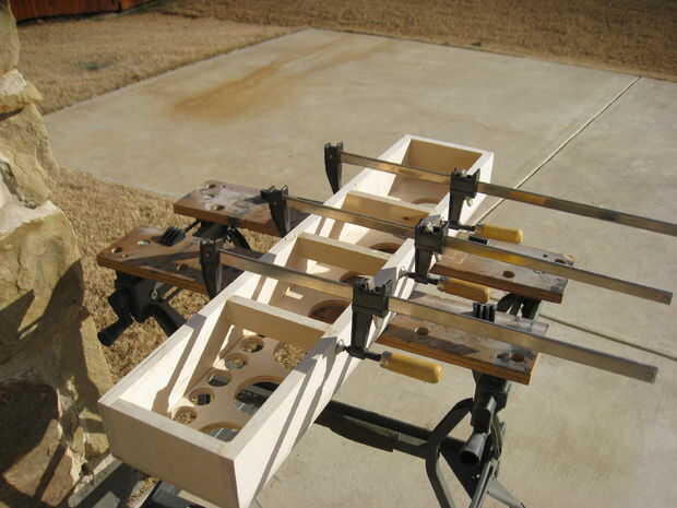 Usé pegamento de madera y pinzas para montar las cajas. Corté un par llaves pequeñas que se pueden ver en las fotos. Dejó la espalda a propósito ya que es donde va el filtro.