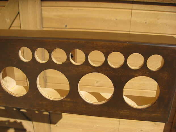 Antes del montaje de los conductores y el cruce del edificio arena del recinto luego teñidas con una tinción oscura y poner en varias capas de barniz de poliuretano.