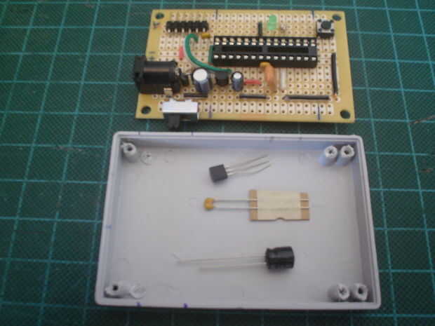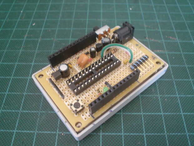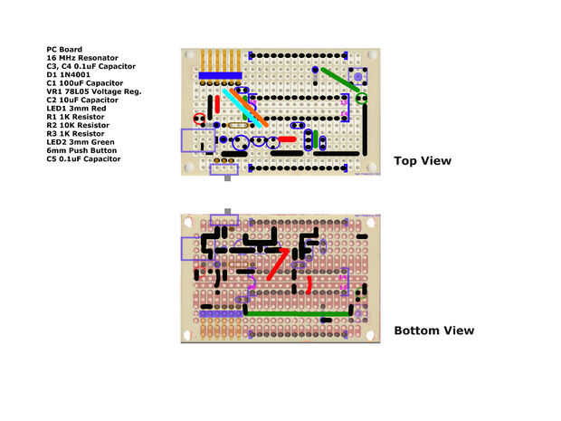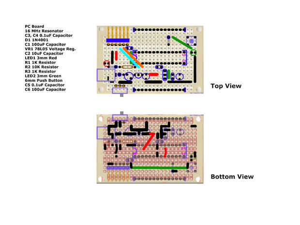 Conecté todos los cables entre el microcontrolador y los dos carriles de 14 pines en ambos lados de la Junta. E instalé los dos rieles de macho de 14 pines a la Junta.