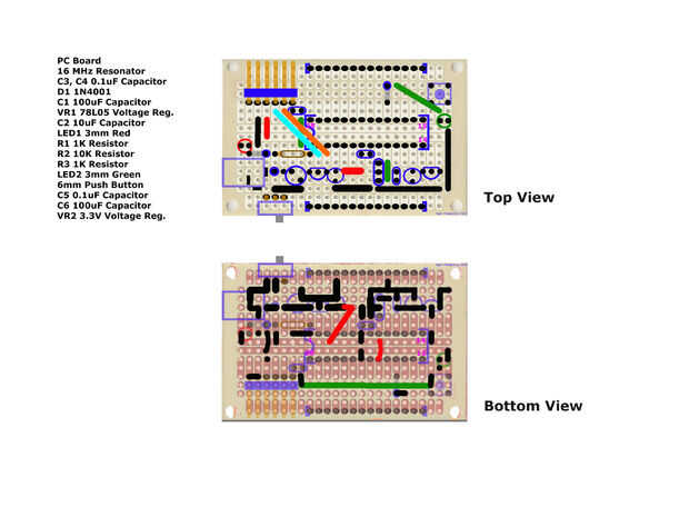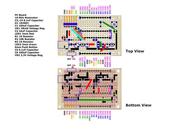 Nota: VR2 - 3.3V regulador de voltaje se muestra en el esquema (IC3) es L78L33ACZ (Digikey #497-7288-ND).