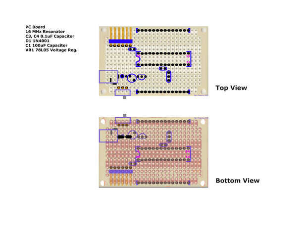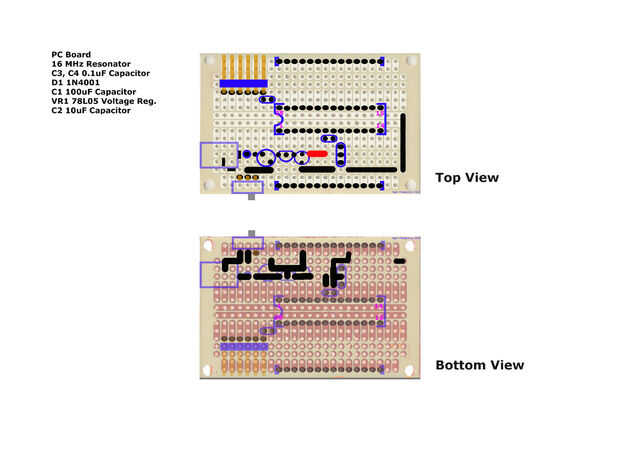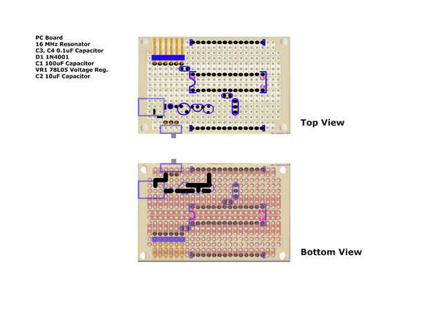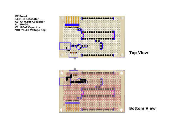 El tablero es exactamente igual a la Junta que menciono en la lista (Radio Shack #276-150). Y es bastante fácil averiguar donde se encuentra en los componentes. Esto será fácil para ambos, en lugar de utilizar las palabras para explicar Dónde está el componente que se encuentra.