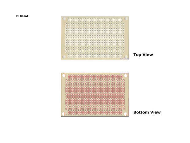 Lo orienté la Junta es que los tres agujeros de soldadura individuales en el extremo inferior de la imagen, y los dos agujeros de soldadura individual será en el extremo superior de la foto. Anuncio ofrezco también la vista de la parte inferior para mostrar cómo hice mi soldadura en la parte inferior de la PCB y el diseño del PCB.