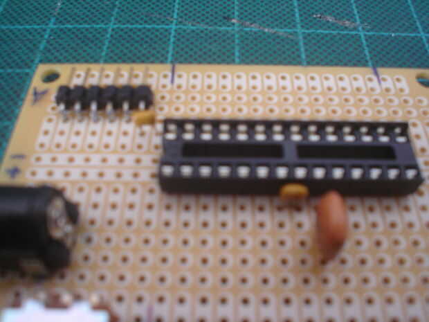 Luego añade C2 - condensador de 10uF a la pizarra al lado de la pierna derecha del regulador de voltaje de 5V. Tenga en cuenta que este condensador es también tienen polaridad. El positivo (+) del condensador se coloca junto al derecho máximo del regulador de voltaje. Entonces soldadas estas dos piernas juntas.