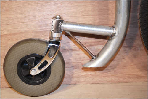 La varilla de apoyo rueda tubo y armadura se muestra soldada con autógena a la estructura en la figura 10. Inicialmente tack soldar todas las piezas juntas para que inspeccione el alineamiento. Ambas ruedas deben ser en línea cuando estén en la posición recto para que su scooter las pistas correctamente al intentar conducir en línea recta.  "Intento" es la palabra clave aquí!