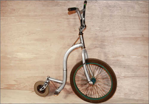 Terminado y listo para ser pintado SpinScooter se muestra en la figura 17 después de muchas carreras arriba y abajo de la sección limpia en mi garaje. Aunque me caí varias veces en la pared y la pila gigante de chatarra bicicleta torcida, el SpinScooter demostró gran promesa, capaz de deslizarse en línea recta cuando no estaba tratando de hacer un 360. Aunque trata de poner un hubmotor delantero y batería de la motocicleta antes de pintar, pero esa pequeña voz en mi cabeza que ayuda a mantenerme viva dije: "Tío, ¿qué estás totalmente loco?!" Decidí que la velocidad de retroceso sería la mejor opción!