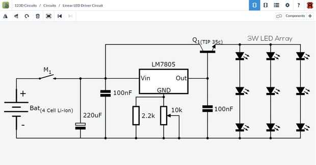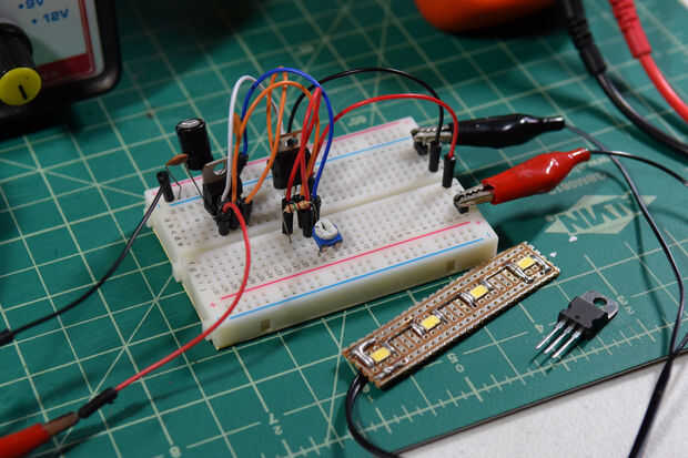 Necesitamos controlar el brillo de los LEDs con un circuito dimmer. Hay dos circuitos ideal a utilizar: el convertidor del buck PWM y el regulador de tensión lineal. El convertidor buck es más eficiente de potencia en comparación con el regulador lineal aunque cuando usted dispara vídeos utilizando una fuente de luz controlada por un convertidor del buck PWM, los videoclips tiende a rasgarse.