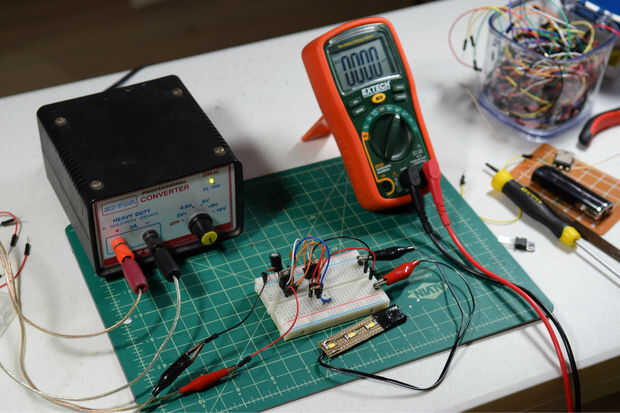 con una onda de la mano, vuelta en una USB accionado lámpara de LED de interruptor de contacto. No tienes que tocar realmente el sensor. Es tan sensible, activa por la presencia de un dedo una o dos pulgadas lejos. A pesar de que el circuito que se d