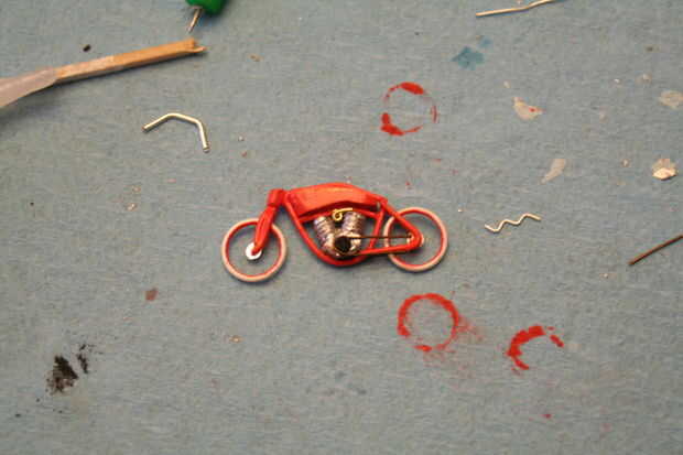 Una vez que todo está pintado, es hora de empezar a poner cosas juntos. El truco aquí es agregar tantos detalles como sea posible. Como se puede saber, tomó varios intentos para que los pedales, el mag y cables y algunos otros bits. Otro truco es añadir detalles con pintura-un palillo de dientes mojado en pintura plata hace bastante buenos puntos simulando las tuercas y pernos.