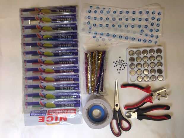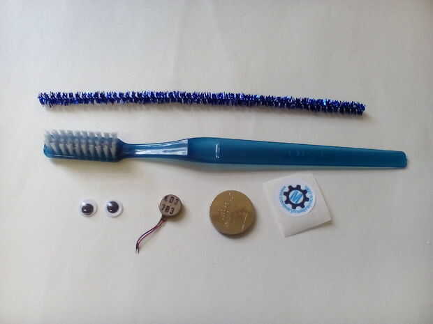 Dependerá de la cantidad de materiales el el número de bristlebots a realizar... tomamos suficiente para construir 100 y se quedó sin kits de largo antes de que lo niños para construirlos. Se necesita: